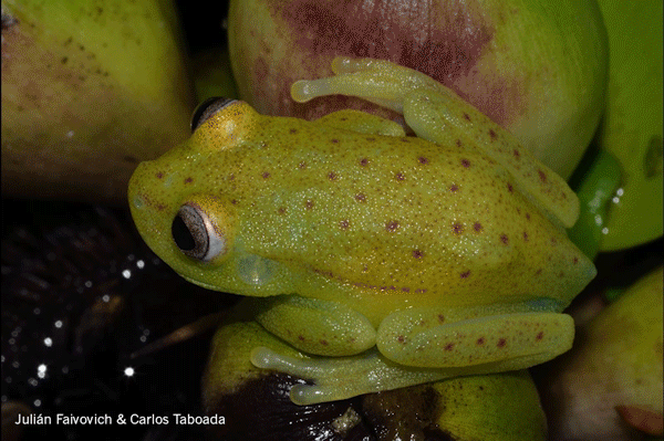 Исследователи предполагали, что обнаружат красную флуоресценцию этих лягушек, так как у них имеется пигмент биливердин. Некоторые белки, связанные с этим пигментом, испускают слабое красное свечение. Но, когда зоолог из Университета Буэнос-Айреса Карлос Табоада (Carlos Taboada) и его коллеги посветили на лягушек ультрафиолетовой лампой, они с удивлением вместо тусклого красного свечения увидели яркое зеленое.