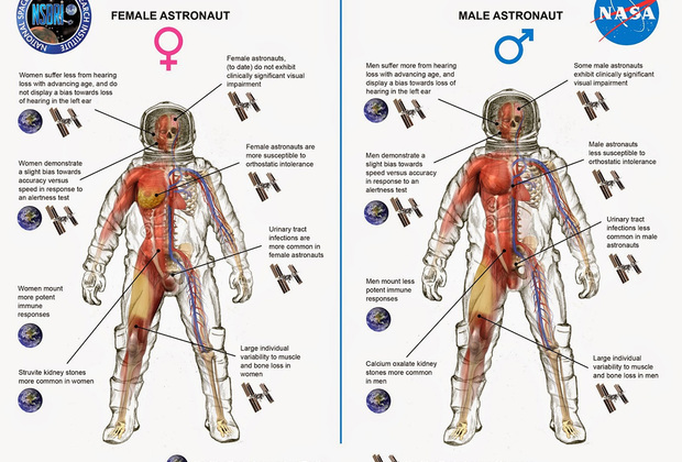 НАСА вместе с Национальным космическим биомедицинским институтом США решило обобщить исследования, в которых рассматривается влияние космических полетов на психологию и физиологию мужчин и женщин. Исследования начались в 2011 году и включали в себя материалы шести рабочих групп. Выводы ученых опубликованы в журнале Journal of Women’s Healt