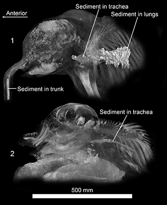 Американские, французские и российские ученые впервые провели компьютерную томографию Любы и Хромы, самых юных и лучше всего сохранившихся мамонтят. Получены не только данные о развитии скелета детенышей — исследователи выяснили, как и отчего они погибли. Срезы компьютерной томографии (КТ) будут представлены в новом номере журнала Journal of Paleontology, а кратко с результатами работы можно ознакомиться на сайте Мичиганского университета.
